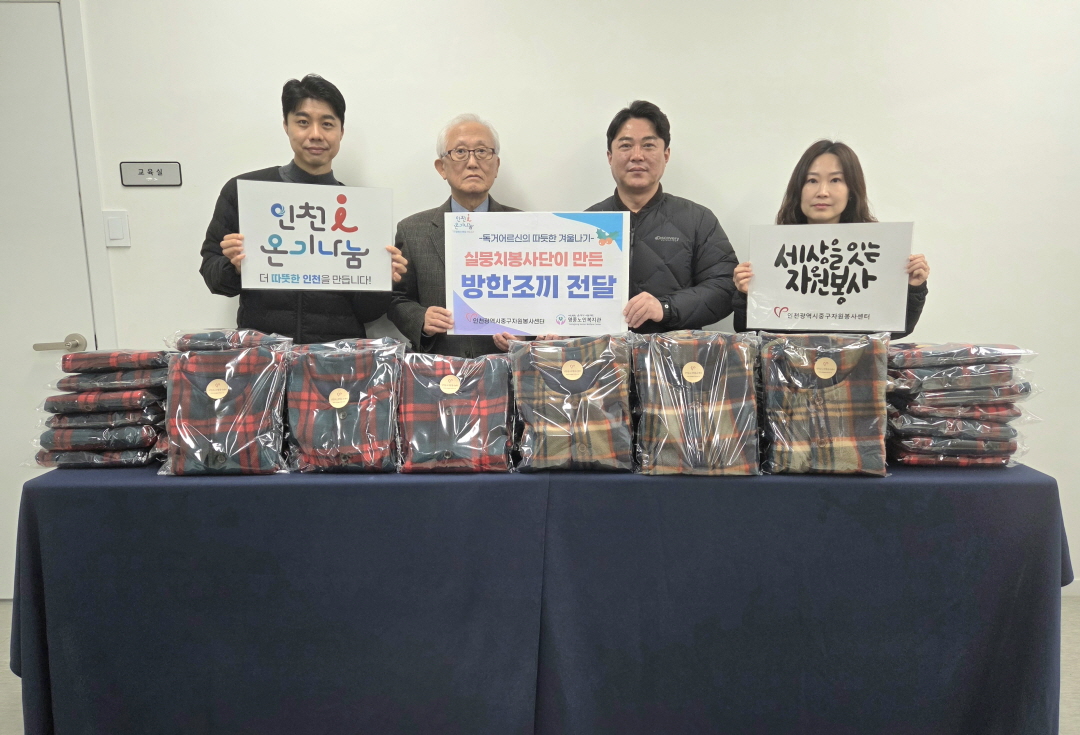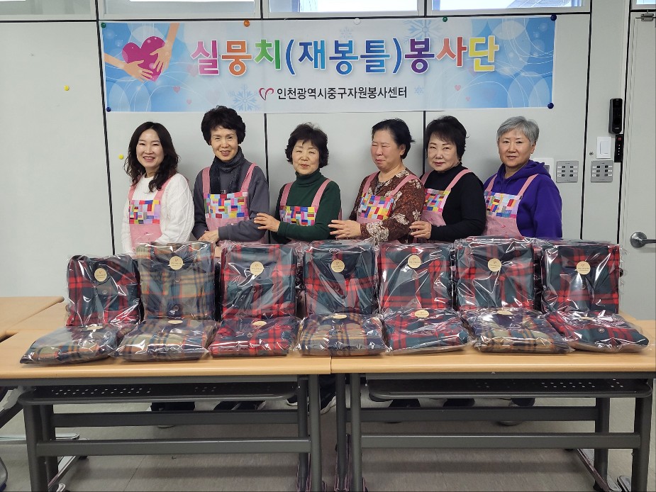 실뭉치봉사단 봉사자들이 3개월에 걸쳐 원단 재단부터 재봉, 포장까지 전 과정을 수행해 제작한 방한조끼를 영종노인복지관을 통해 노인맞춤돌봄서비스 대상 어르신들께 전달했습니다