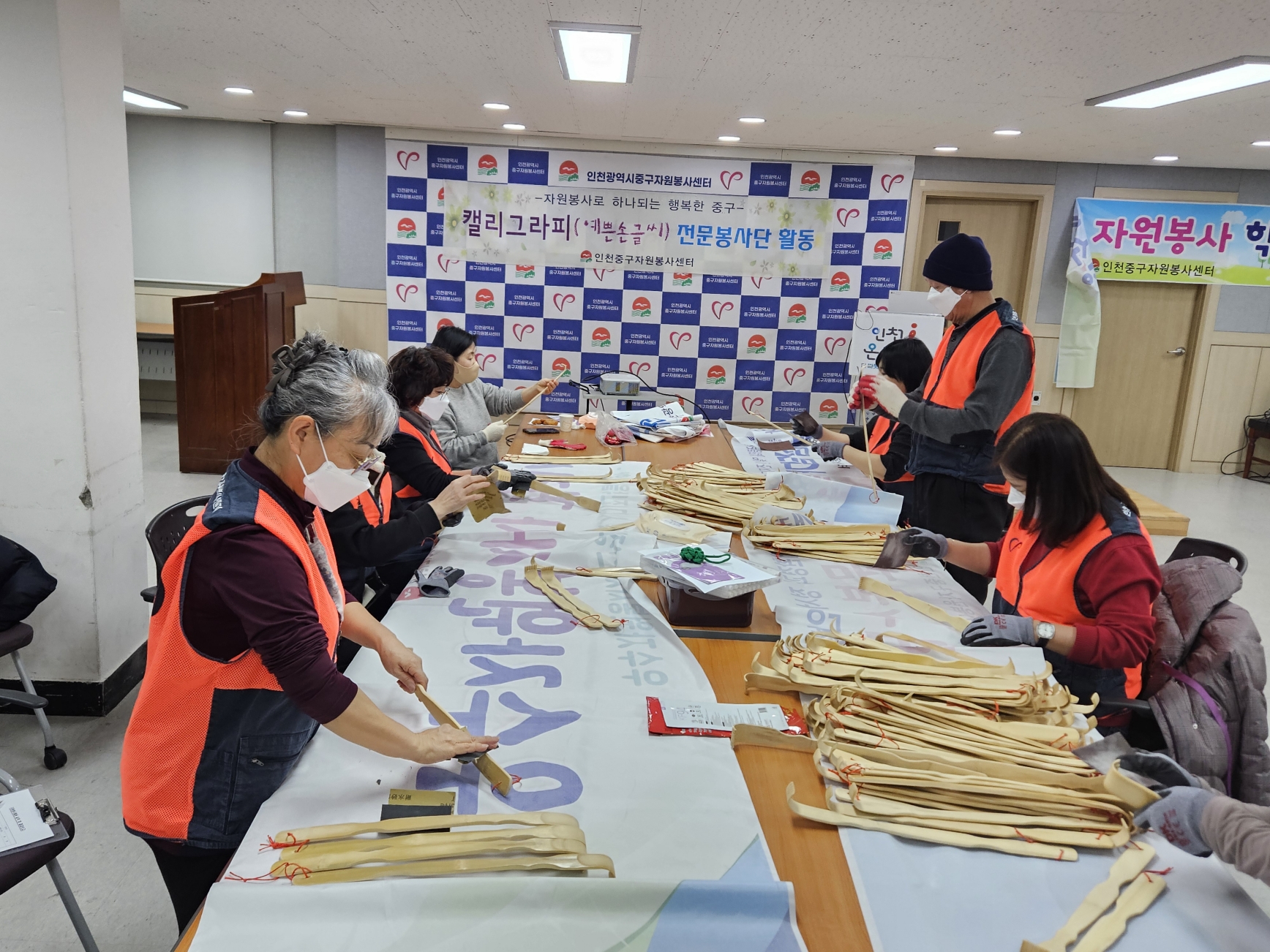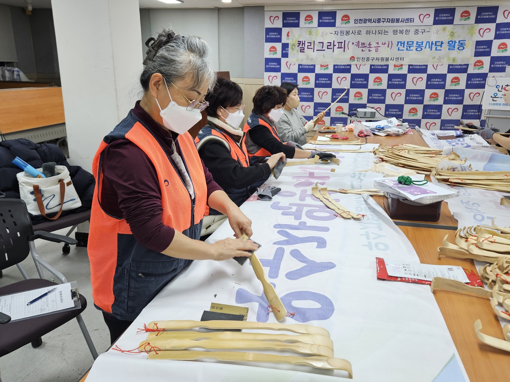 분진과 대나무가시에 고생하신 캘리그라피 봉사단 선생님께 감사를 드립니다